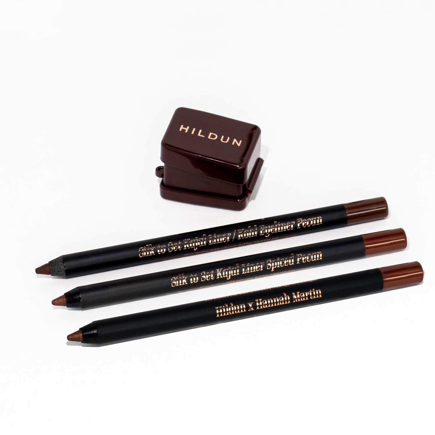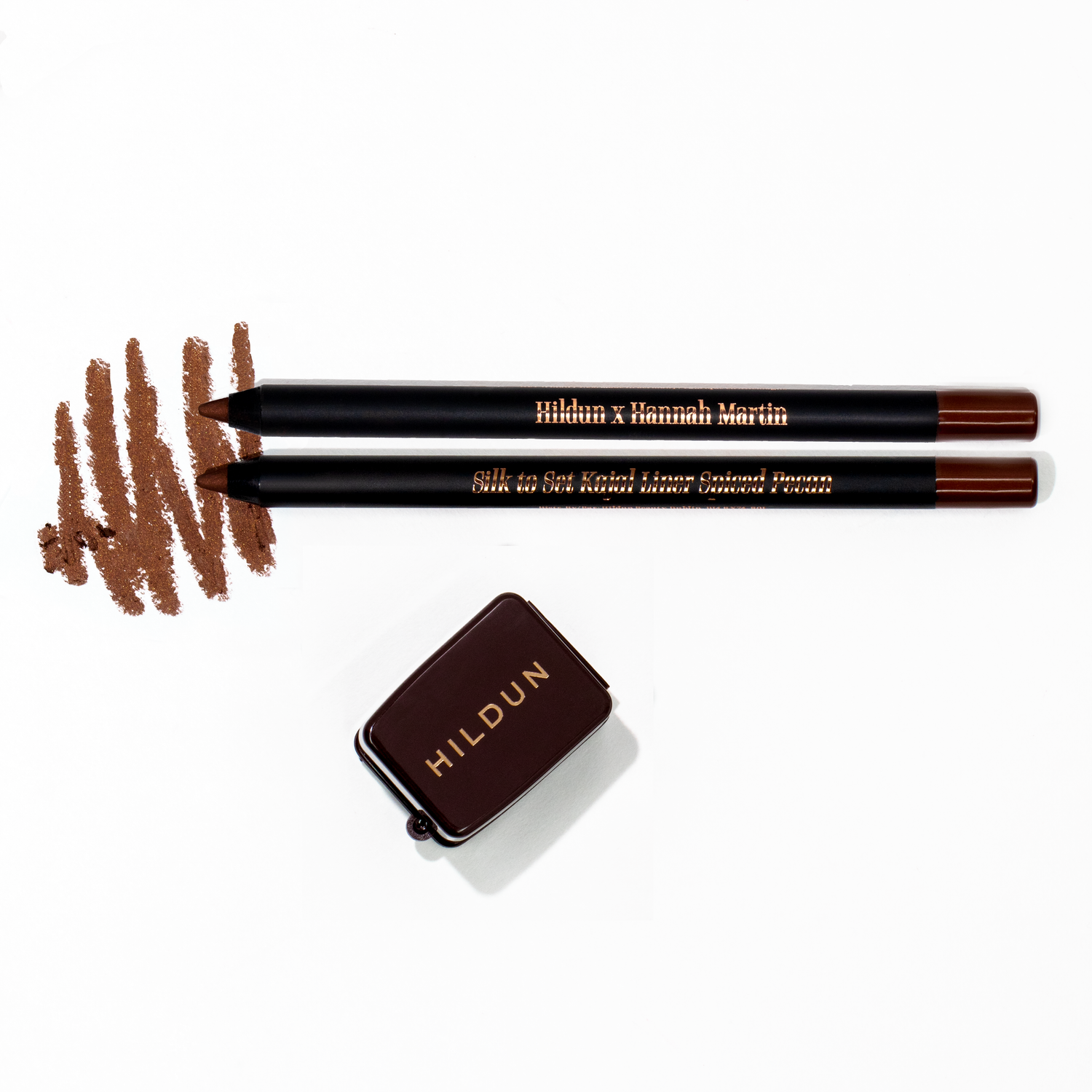 Receive our new look Hildun sharpener free with every order of Hildun x Hannah Martin spiced pecan kajal liner.