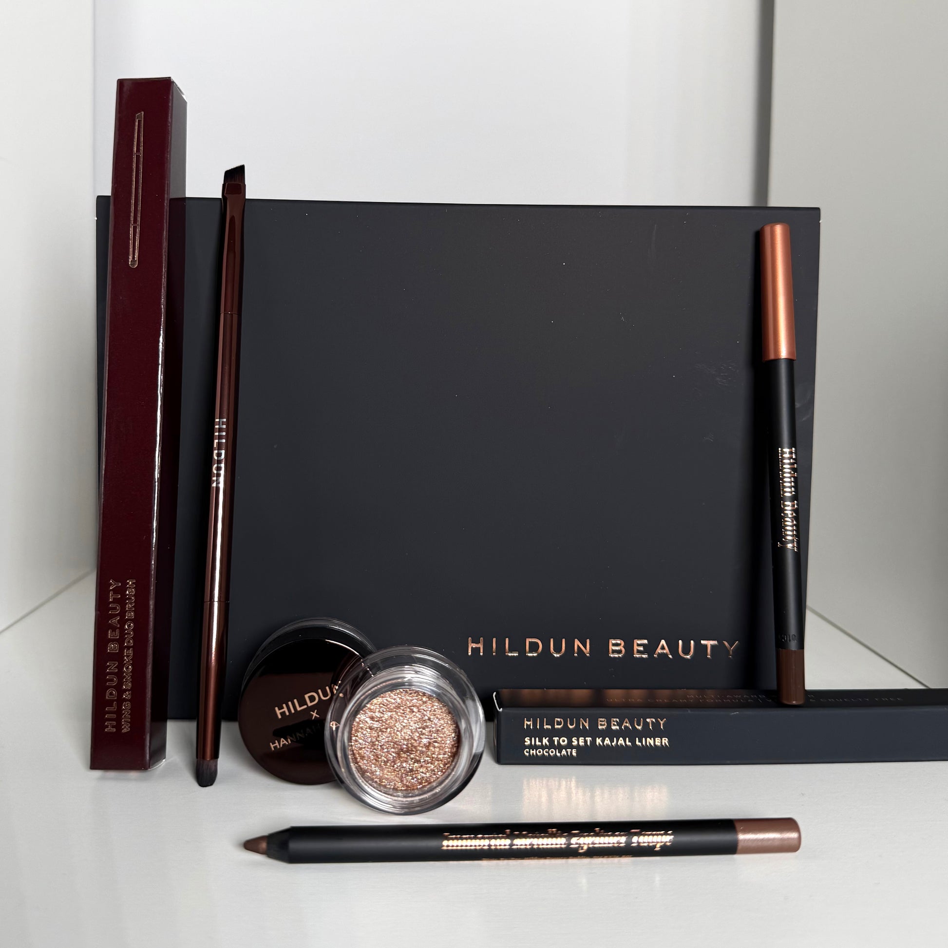 Save 25% on our Toasty Shimmer Edit that features 4 products for the perfect Bronze/ Toasty Makeup look this season: Silk to Set Kajal in Chocolate, Soul Shimmer Shadow in Sugared Almond, Immortal Metallic liner in Taupe & our Wing & Smoke Precision Eye Brush. The products come in a beautiful matte black branded gift box, the perfect gift.