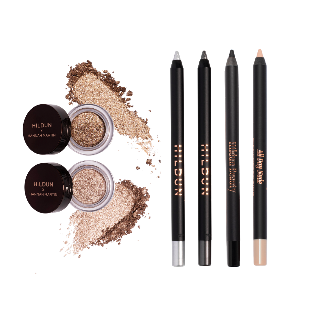 Save 25% on our November Edit Volume 3: Shimmering Eyes! This set features everything you need to let your eyes sparkle: Soul Shimmer shadows in shades Champagne Truffle and Sugared Almond, 2 Immortal Metallic liners in Silver and Granite, Silk to Set Kajal liner in Noir and our All Day Nude eyeliner. All in a gorgeous matte black Hildun Beauty gift box. Stunning!
